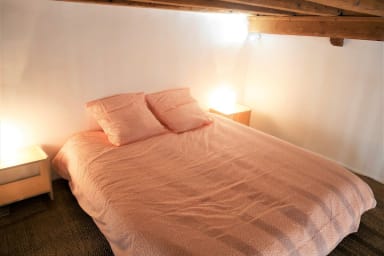 A mezzanine bedroom with a king-size bed (180*190 cm), high-quality bedding
