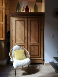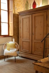 Discover this apartment located in an 18th-century building with French ceilings and typical Lyon architecture, featuring exposed stonework and wooden beams.