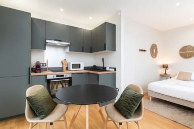 Welcome to this completely renovated studio apartment, just a few minutes' walk from Part-Dieu station. This modern studio offers all the comforts you need for a pleasant stay. The kitchen is fully equipped for preparing your meals, and the sleeping area has quality bedding, thanks in particular to its 160 cm-wide bed. A fast Wi-Fi connection is also available for working in peace. The bathroom is modern and functional, with a shower.
