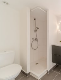 You will have two cozy and separate rooms, each with storage spaces. The bathroom has a shower, heated towel rail and toilet.