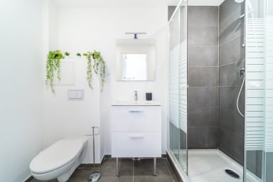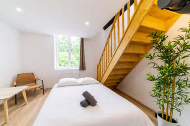 Charming apartment for 4 people, fully renovated, with a private entrance. Ideally located on Stéphane Déchant Street, a 5-minute walk from shops and the center of Oullins. A modern and peaceful retreat, perfect for your stays in Lyon.