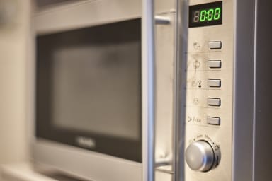 ✔️ une kitchenette ouverte équipée avec un four à micro-ondes , une machine à café Nespresso, un petit réfrigérateur , des plaques de cuisson électriques, une bouilloire, un grille-pain