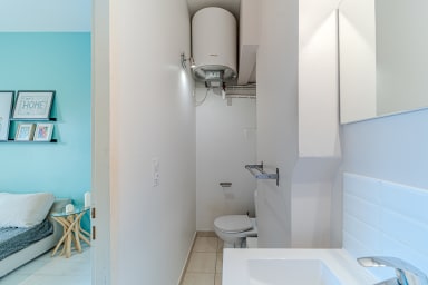 ✔️Salle de douche : vasque, rangement, miroir, WC 🚿