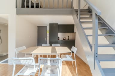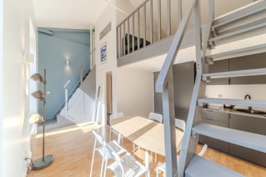 Appartement lumineux en duplex rénové au cœur de Lyon situé au 1er étage d'un immeuble rue Du Plat, à quelques pas de la Place Bellecour. La pièce de vie lumineuse comprend un espace salon avec canapé, une grande table à manger et chaises; Une kitchenette entièrement équipée est à votre disposition pour préparer vos repas, plaque de cuisson, réfrigérateur, cafetière Nespresso, bouilloire, grille pain, vaisselle et ustensiles de cuisine, une table à manger avec 4 chaises. Deux chambres cosy séparées avec des rangements. La salle de bain comprend une douche, sèche serviettes et des toilettes.