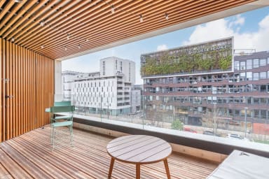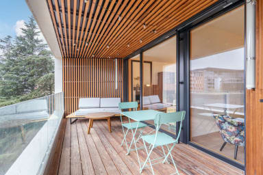 ☀️Un grand balcon avec un coin détente et une table et chaise, parfait pour un petit déjeuner au soleil